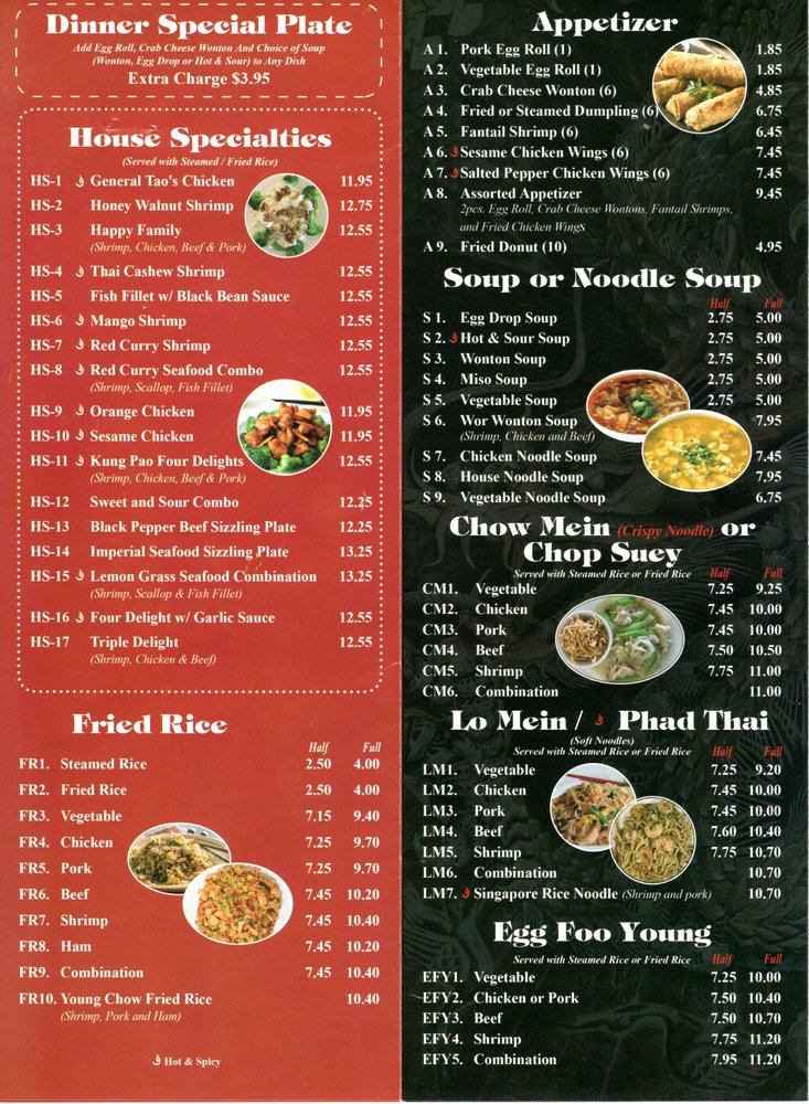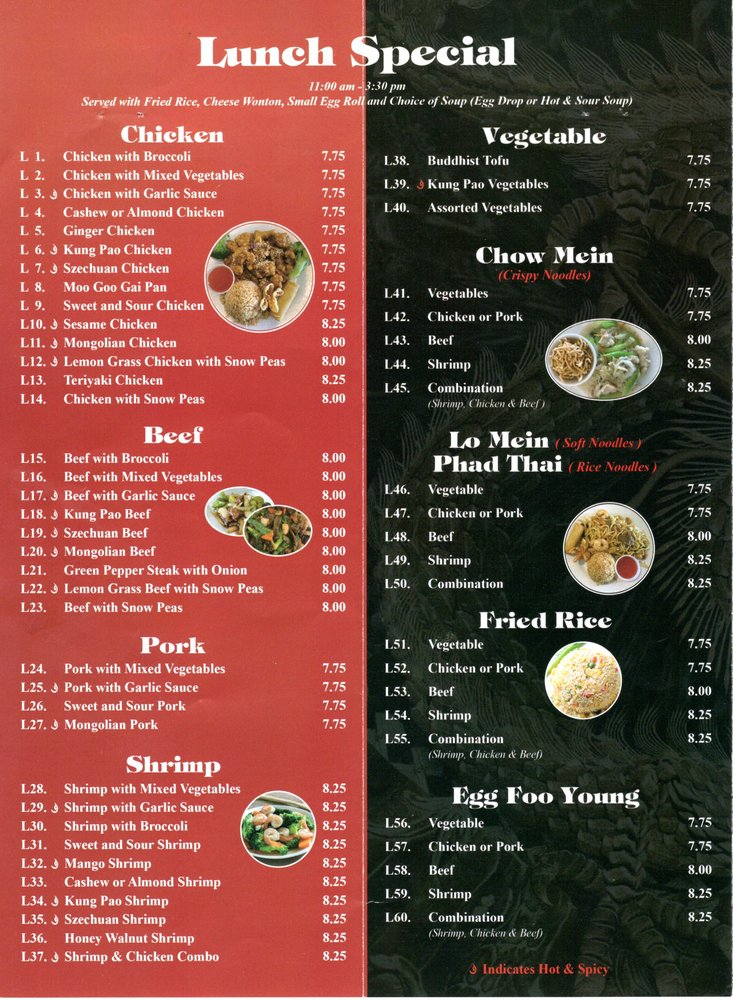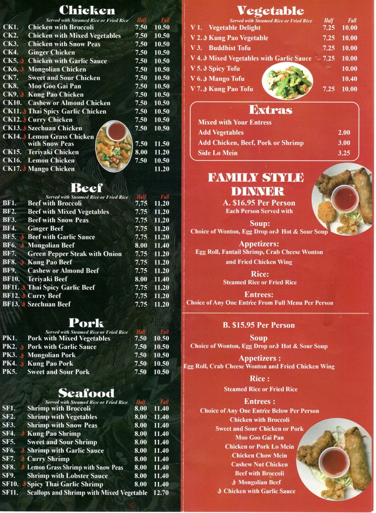 - Appetizers: Start your meal with Fried (6) or Steamed Dumplings (6) priced at $6.25 and $6.95 respectively. Both options are invitingly rich and satisfyingly delicious.